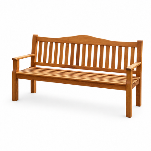 A classic Iroko hardwood seat handcrafted for durability and style, offering customisable features and timeless appeal for any public or commemorative space.
